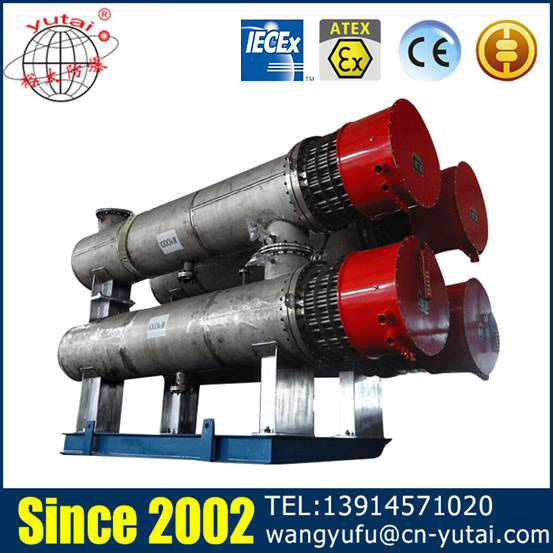 該加熱器加熱均勻,電熱管表面負(fù)荷低,不易結(jié)焦。電加熱器殼體可采用食品級(jí)不銹鋼或碳鋼,電熱管材質(zhì)采用321。